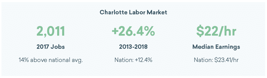 This means there’s a high likelihood of designers in that area who are unemployed, or perhaps working in different fields by necessity but have the skills you need. Since Charlotte isn’t that far from Philadelphia, the idea of relocation for these candidates probably isn’t far-fetched.