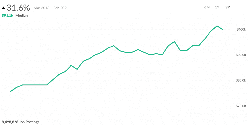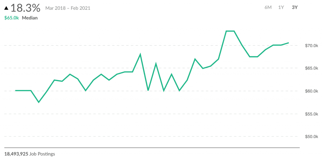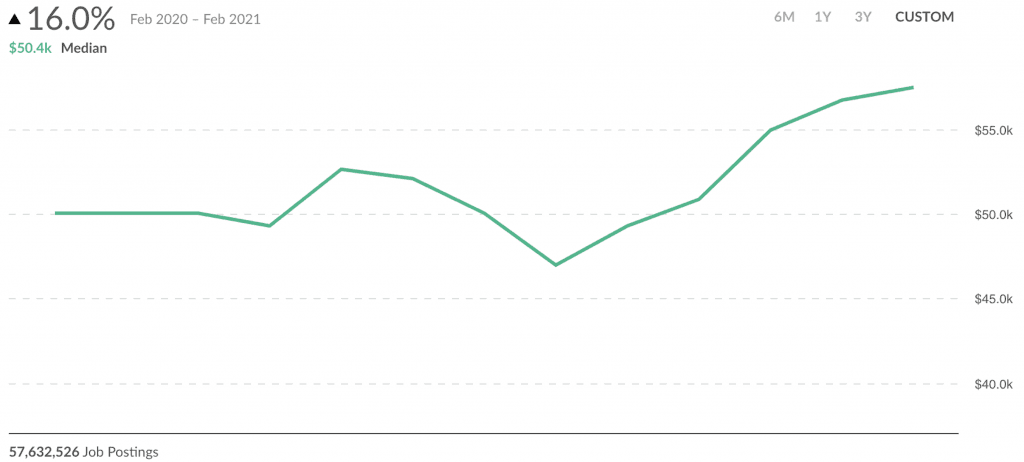 We just released a new feature that tracks advertised wages. On average, advertised wages grew by 16% in a single year, February 2020 to February 2021.