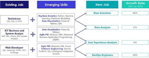 Singapore Smart Nation and Digital Government Office (SNDGO) worked with LinkedIn Economic Graph as part of Singapore’s AI Strategy. The goal of the collaboration was to explore where the necessary AI talent works and what skills they have across regions. Big labor market data enabled understanding of emerging skills and trends that is otherwise not possible with traditional data. In addition, Infocomm Media Development Authority in Singapore has been using Emsi Burning Glass data since 2017 for early-stage analysis to help glean insights of local talent demand to facilitate making policy decisions to help career counselors provide guidance around Media and ICT roles.