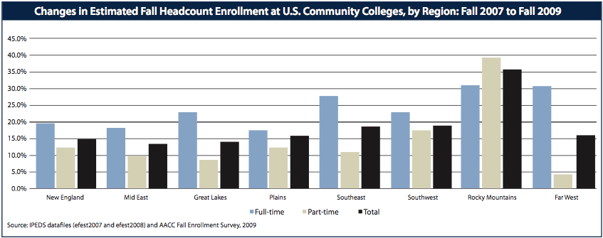 Community college enrollment nationwide has spiked 24.1% in two years, with the largest percent growth in the Rocky Mountain region — Colorado, Idaho, Montana, Utah, and Wyoming.