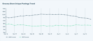 In fact, as of April 14, job postings for grocery stores are up 12% from a year ago.
