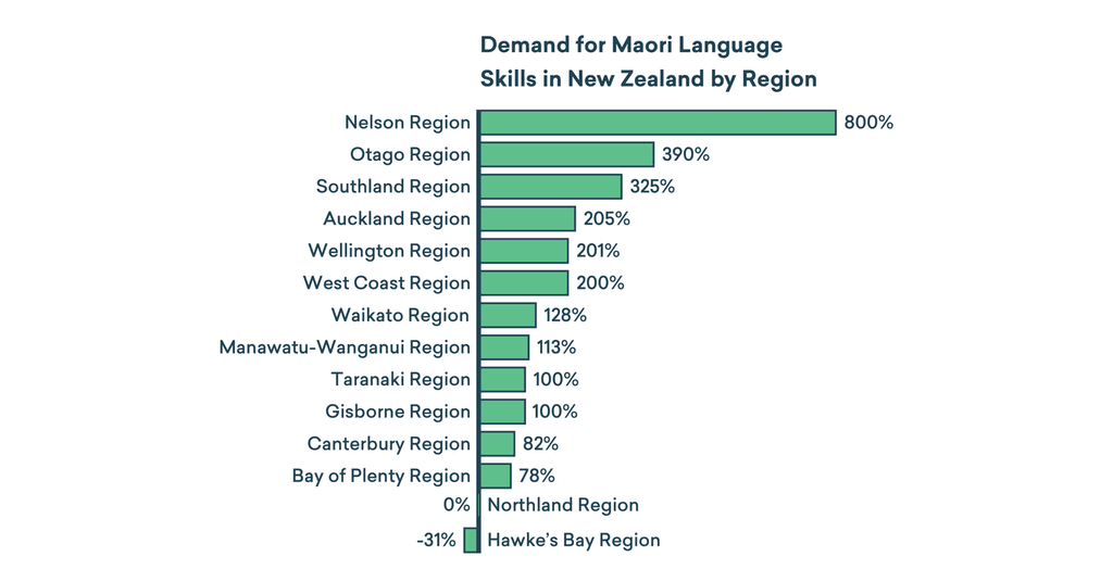 The report found that demand for Māori language skills has grown by a staggering 325% over the past year.