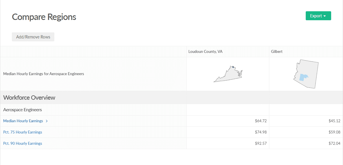 “The Emsi data provided a key selling point for us, being that Orbital would see $20K-$30K of annual labor savings per worker by expanding in Gilbert over Loudoun County,” Giovannini said. “When applying that to 155 jobs, the company would experience roughly $3 million in savings per year in Gilbert.”