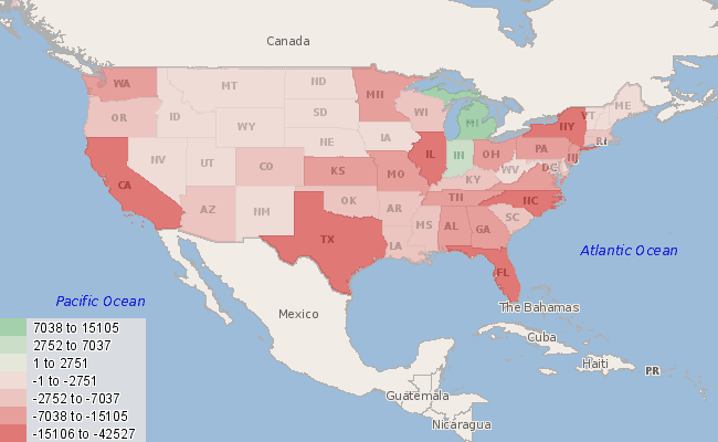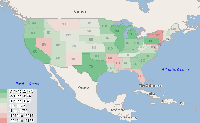 State2010 Jobs2011 Jobs1 Year Growth% Growth2011 EPW2010 LQMichigan (MI)493,975516,42022,4455%$77,0311.4Wisconsin (WI)441,989455,88613,8973%$64,2131.85California (CA)1,318,3391,330,54712,2081%$91,4140.95Texas (TX)861,160871,53310,3731%$79,4600.87Pennsylvania (PA)582,755593,02110,2662%$69,2161.18Illinois (IL)576,158585,0028,8442%$75,6611.15Ohio (OH)642,086650,0707,9841%$68,6221.44Oklahoma (OK)129,489137,2577,7686%$60,2460.87Indiana (IN)458,750466,3747,6242%$70,8311.87Missouri (MO)253,176259,0205,8442%$62,3981.04Georgia (GA)358,073363,3485,2751%$64,0030.99South Carolina (SC)213,811218,7424,9312%$64,1911.26North Carolina (NC)447,190451,9094,7191%$65,6171.25Minnesota (MN)304,342308,7534,4111%$71,2581.28Oregon (OR)175,009179,2014,1922%$71,3321.15Washington (WA)270,320274,4874,1672%$81,1441.02Kentucky (KY)214,960219,0244,0642%$64,2161.33Utah (UT)117,261121,1943,9333%$62,7591.04Iowa (IA)205,821208,6852,8641%$63,4451.52Louisiana (LA)143,884146,3032,4192%$79,3440.82Nebraska (NE)94,24396,3752,1322%$54,8811.12Virginia (VA)238,671240,5301,8591%$64,7150.72Arizona (AZ)158,762160,5031,7411%$79,2490.72Idaho (ID)57,58958,9191,3302%$61,1130.95Alabama (AL)243,341244,6561,3151%$62,6401.41New Hampshire (NH)69,76470,9001,1362%$76,3661.21North Dakota (ND)23,71324,7641,0514%$56,2480.68Maine (ME)54,85955,9001,0412%$60,0460.99Connecticut (CT)172,506173,5471,0411%$93,3761.14Colorado (CO)137,316138,3291,0131%$73,6510.63South Dakota (SD)38,56239,4538912%$52,4091.01Kansas (KS)165,069165,8667970%$64,6321.32Vermont (VT)33,44234,1667242%$65,2291.15Rhode Island (RI)41,96942,5455761%$64,8141.03West Virginia (WV)51,21651,6354191%$64,9110.81Massachusetts (MA)264,721264,8871660%$94,3580.92Wyoming (WY)10,35010,4591091%$64,5770.38Hawaii (HI)16,08816,185971%$48,2390.28Tennessee (TN)309,846309,934880%$67,7741.26Delaware (DE)27,10827,148400%$72,7700.74Alaska (AK)14,66014,686260%$47,9740.47District of Columbia (DC)1,6521,670181%$80,9420.03Montana (MT)19,53419,320-2140%$54,5250.45New Mexico (NM)34,23033,806-4240%$60,4810.46Florida (FL)331,924330,401-1,5230%$65,3710.49Arkansas (AR)164,142162,547-1,5950%$51,6231.53Nevada (NV)41,51839,753-1,7650%$64,2900.4Maryland (MD)121,824119,962-1,8620%$79,8800.52Mississippi (MS)139,745137,837-1,9080%$53,4241.35New Jersey (NJ)268,005264,004-4,0010%$95,6170.78New York (NY)481,182476,092-5,0900%$75,6280.63Source: EMSI Complete Employment - 2011.3