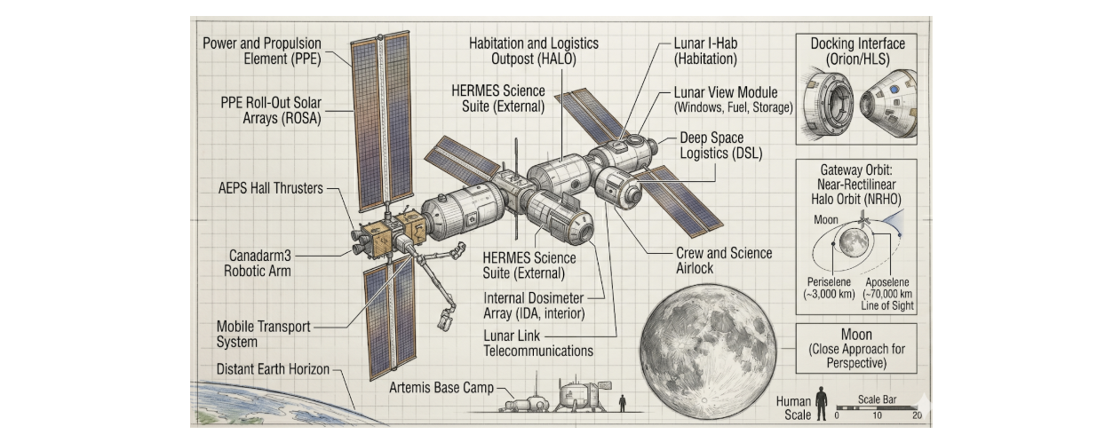 The broader Artemis program is organized into distinct operational units including Exploration Ground Systems (infrastructure and facilities), Space Launch System (the Artemis rocket), Orion (the Artemis spacecraft), Gateway (the lunar orbit space station), Human Landing System (Artemis lunar lander), and the Extravehicular Activity and Human Surface Mobility Program (spacesuits, lunar terrain vehicle, and related mobility technologies).