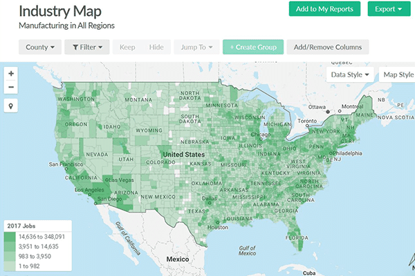 “With Emsi, the data is very clear, which empowers our Centers to weave together an intuitive story of the manufacturing landscape to local and state government,” said Thomas.