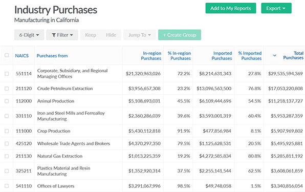 Prior to using Emsi, the Centers were blind to expected changes in declining or emerging industries. The Centers now use input-output modeling (another feature in Developer) to understand the ripple effect of changes in the manufacturing industry. In addition, MEP has been focusing on manufacturing supply chains to identify how much money is leaving specific regions. It’s using this analysis to determine where it should be expanding current business or attracting new businesses. The Emsi tools allow Centers to share visual scenarios with state representatives to get buy-in on strategic decisions.