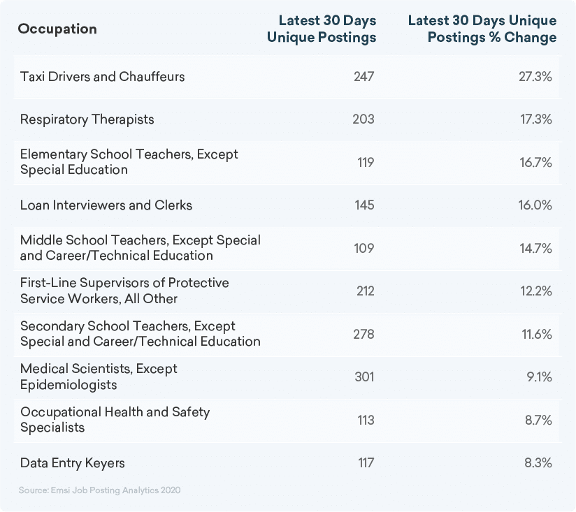 We can also figure out which occupations in Atlanta have been in growth mode over the last 30 days.