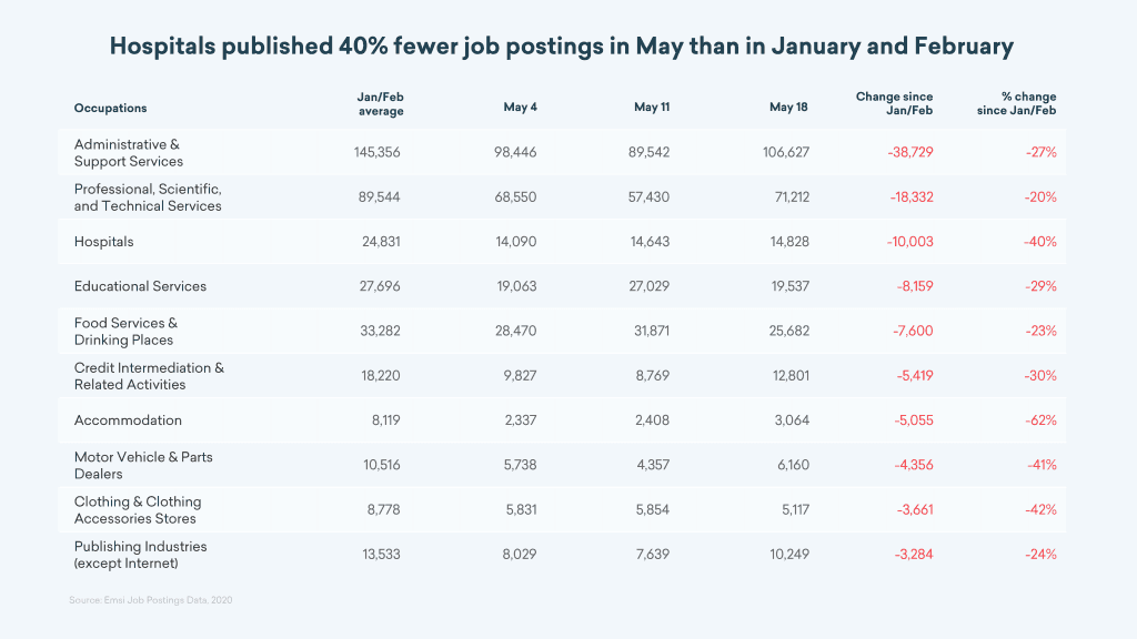 Ironically, Hospitals published 40% fewer job postings in May than in Jan/Feb