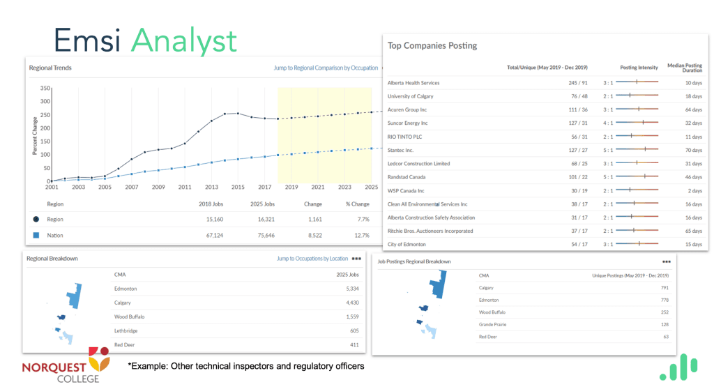 For new program proposals, Alberta’s Ministry of Advanced Education requires evidence of industry or market need, including evidence of student demand, labour demand, and support from industry, employers, and professional organizations. To build a comprehensive need-based case for each program, Suathim turned to Analyst, Emsi’s labour market analysis software, which provides data that allowed Suathim to compare NorQuest’s proposed programs with real-world economic and employment needs.