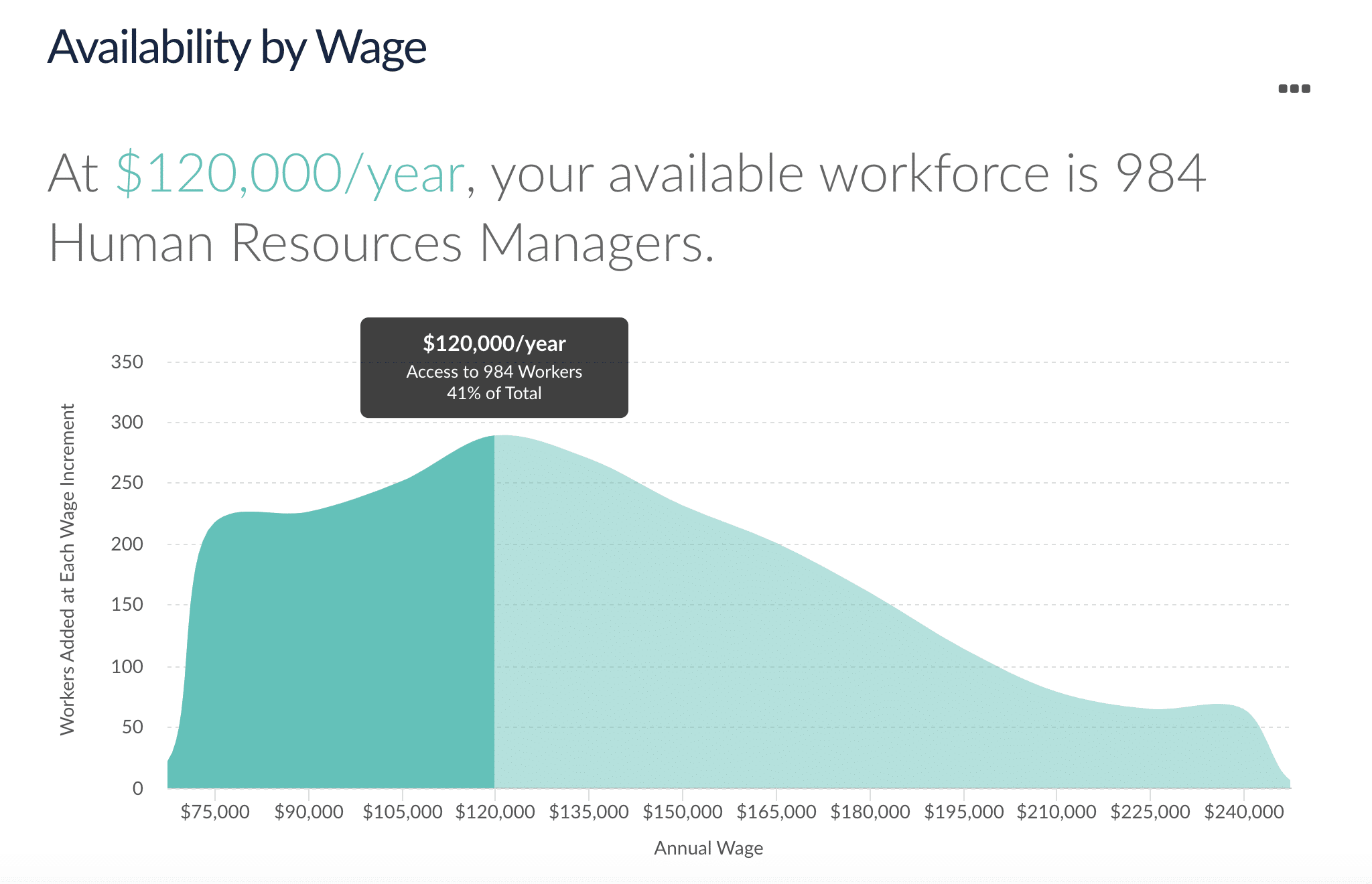 Pulled from the talent availability by wage report in Talent Analyst. Showing how many human resource managers are available in the Houston MSA for $120,000 a year.