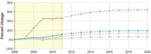 Ontario is no exception to this trend. While the average wage for the province overall was marginally (~3%) higher than the national average in 2011, occupations in the utilities sector were earning an average of $89,145, 4.3% better than the national average for those occupations. Power production and other aspects of the utilities sector clearly play an important role in the Ontario economy. In fact, according to EMSI data inside Analyst, the Ontario electric power generation, transmission, and distribution industry (NOC-S 2211) has been growing very quickly over the last few years and generating remarkably high average wages. Here’s a quick overview of how jobs in the utility sector are performing: