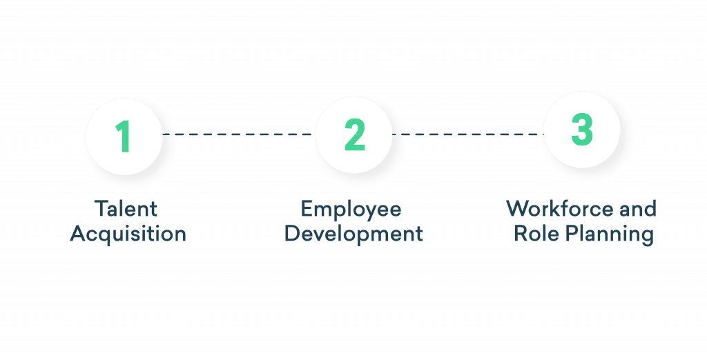 Talent Acquisition: Assess the skills within roles (through skill profiles) and equip recruiters with skill data. They can use that data for talent (and competitor) research, consistency in job postings, and educating hiring managers.