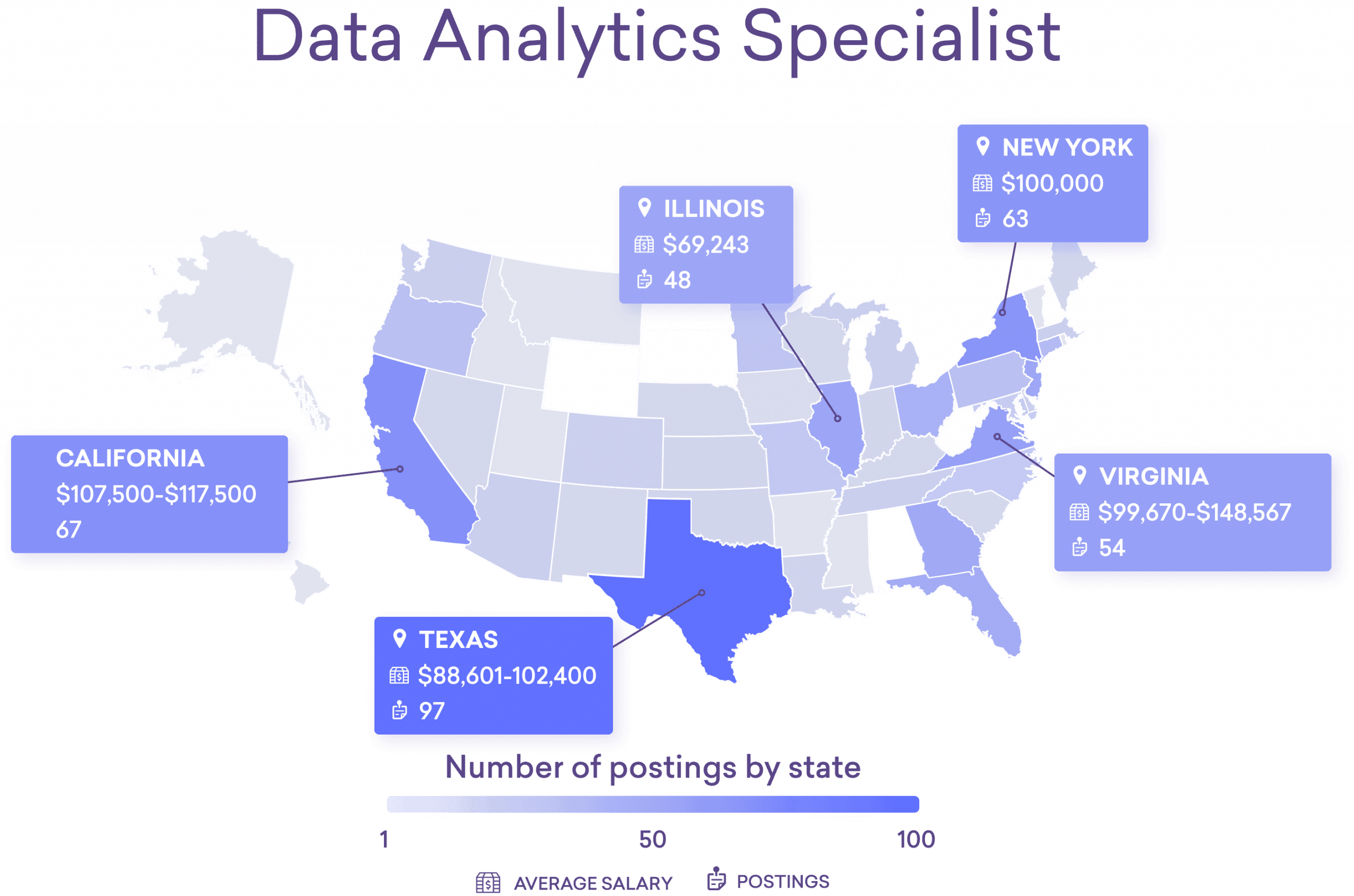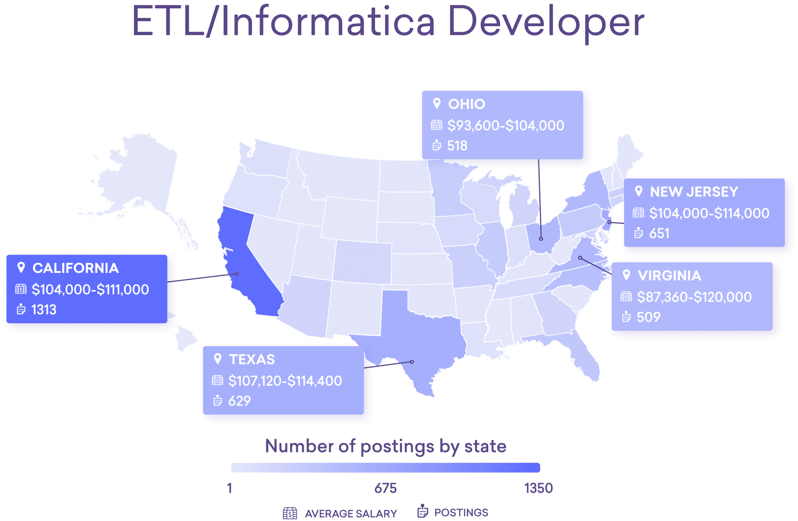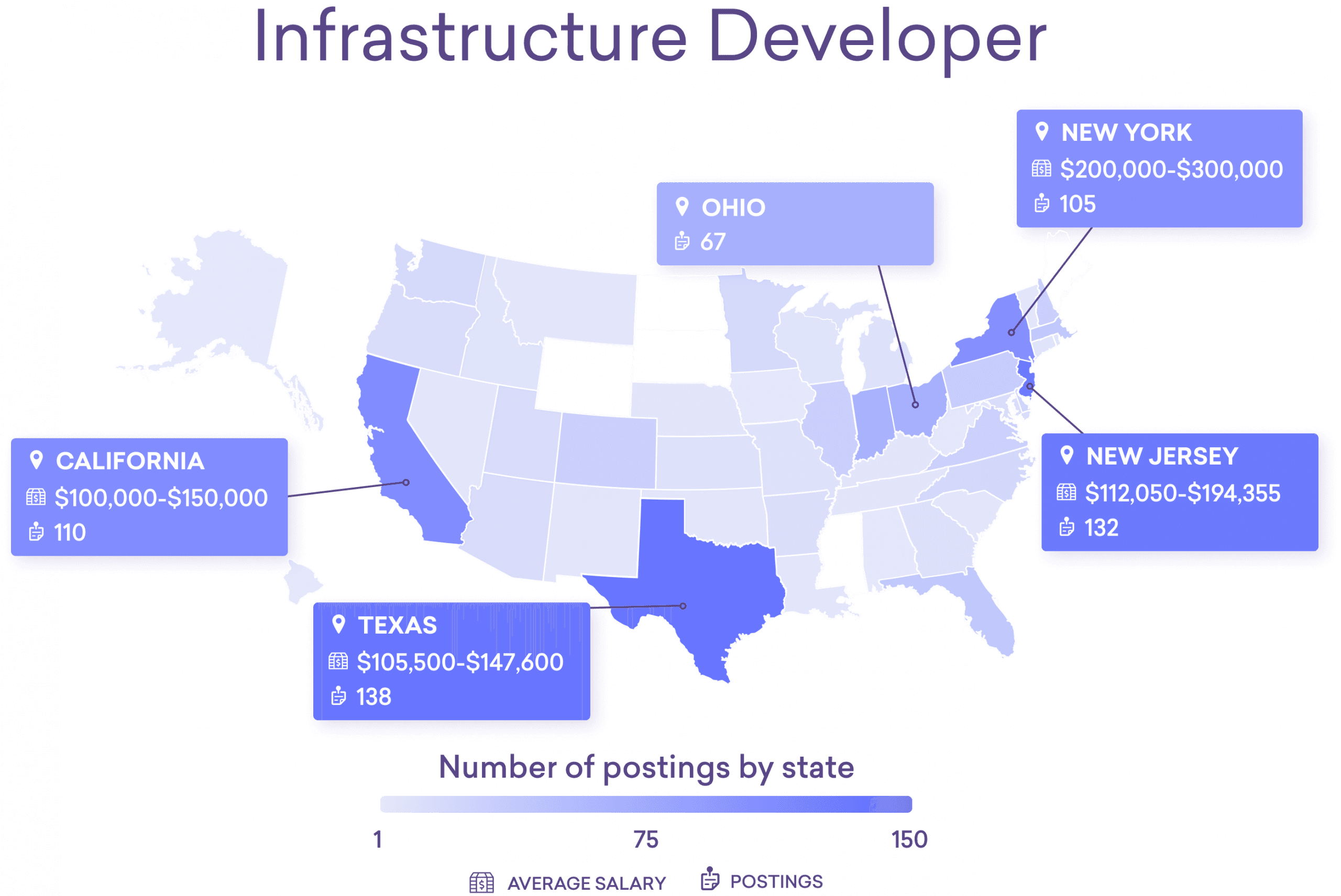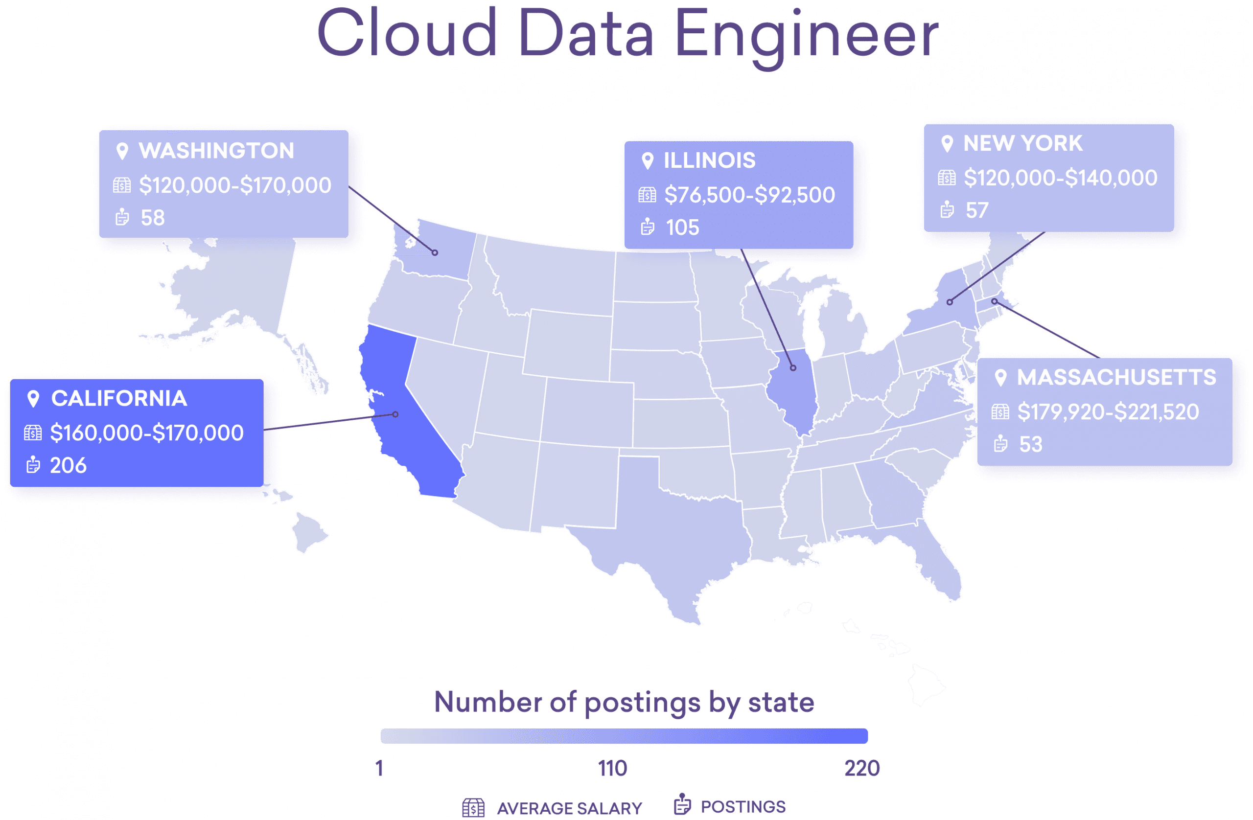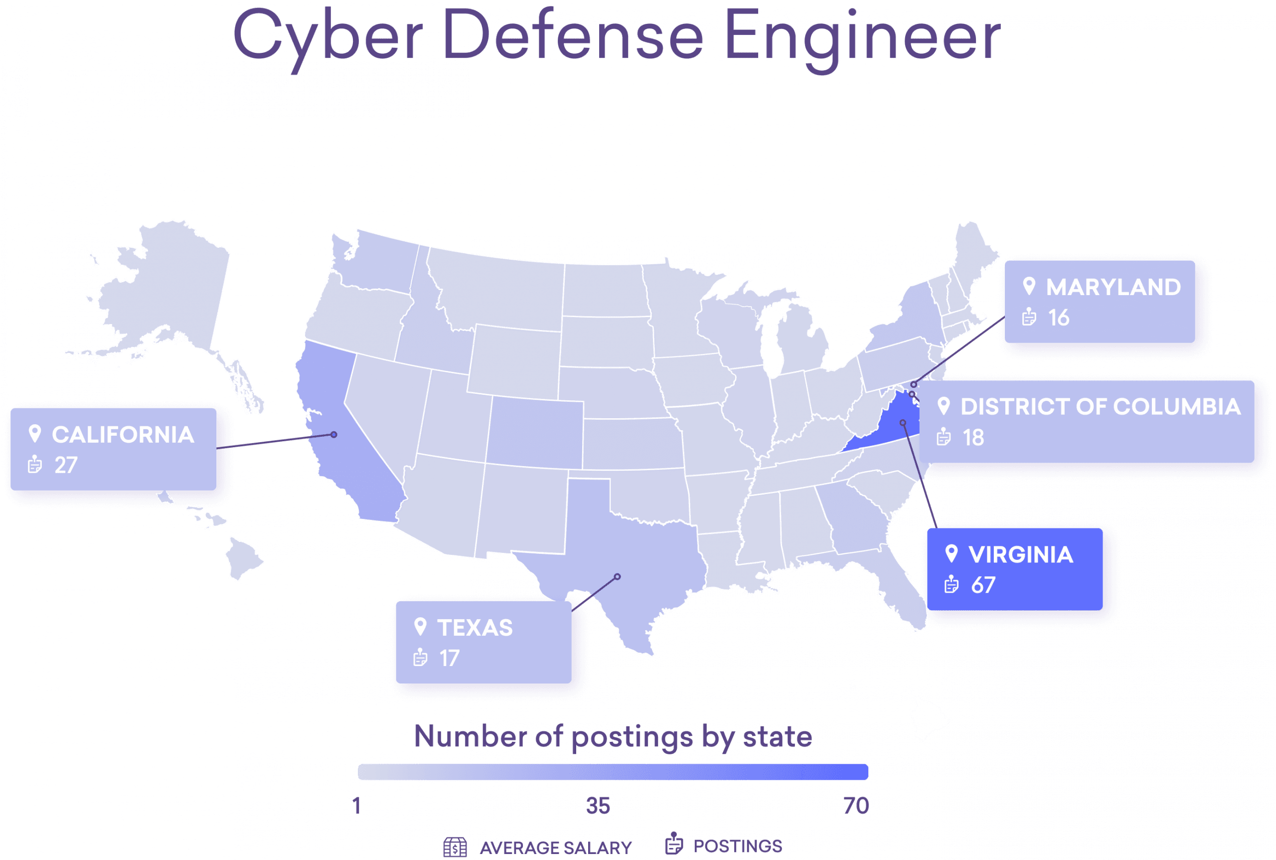 *Note: There is not sufficient compensation data yet for some of these emerging tech jobs (including cyber defense engineers below). This is why average salary ranges may not be included for some jobs in some states.