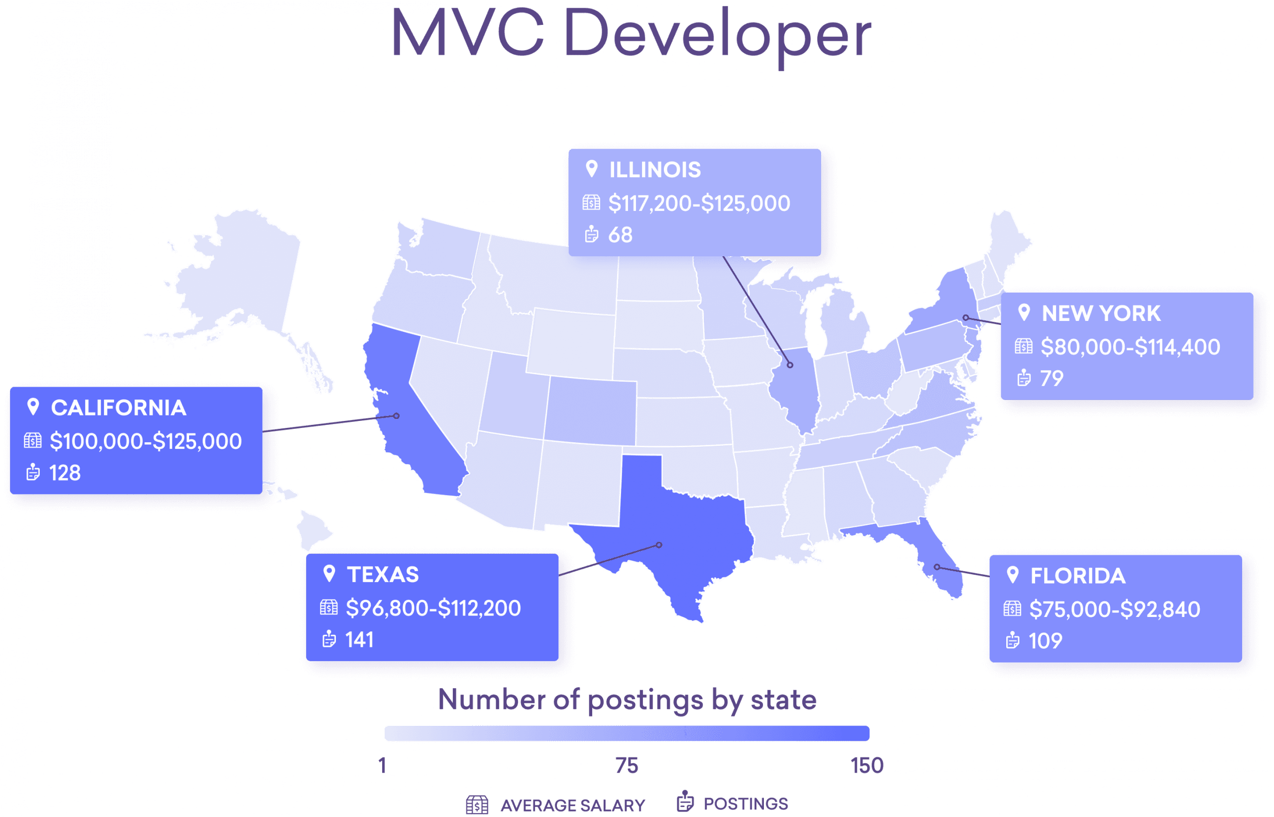 Top 10 skills: Model view controller, C#, .NET framework, unit testing, integration, software development, software engineering, SQL, Java, ASP .NET MVC framework