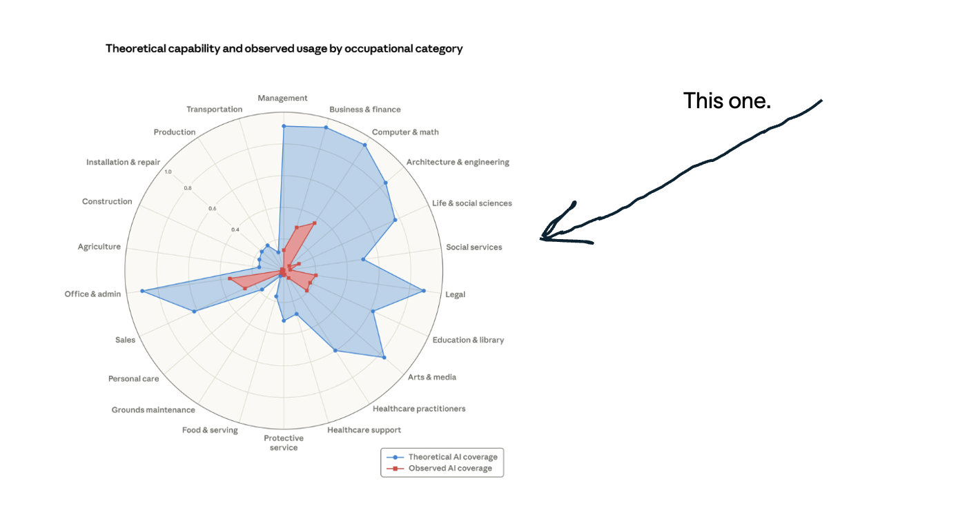 A few weeks ago Anthropic published new research on the impact of AI on the labor market. Its spider chart was everywhere on my LinkedIn feed (and if you work on labor market issues, chances are you saw it too).