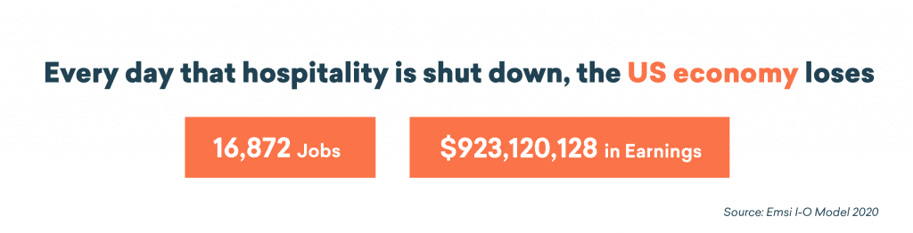 All told, the US economy will lose 1.6 million jobs and $84 billion in earnings if the hospitality industry remains cut off at the knees through May.