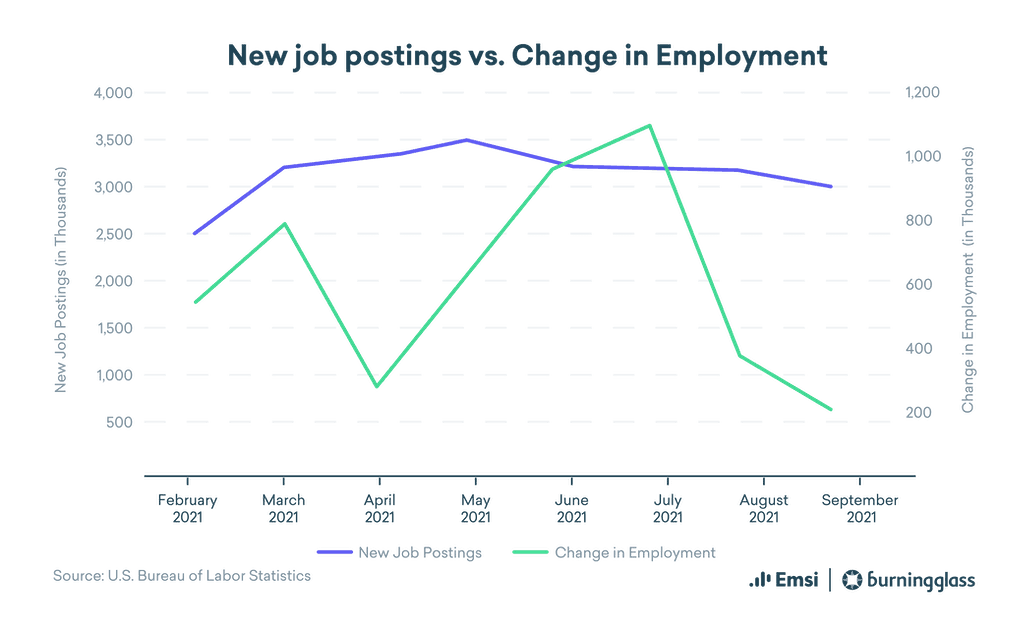 Only a few industries actually increased their postings in September. Most decreased their postings by between 2% and 16%.
