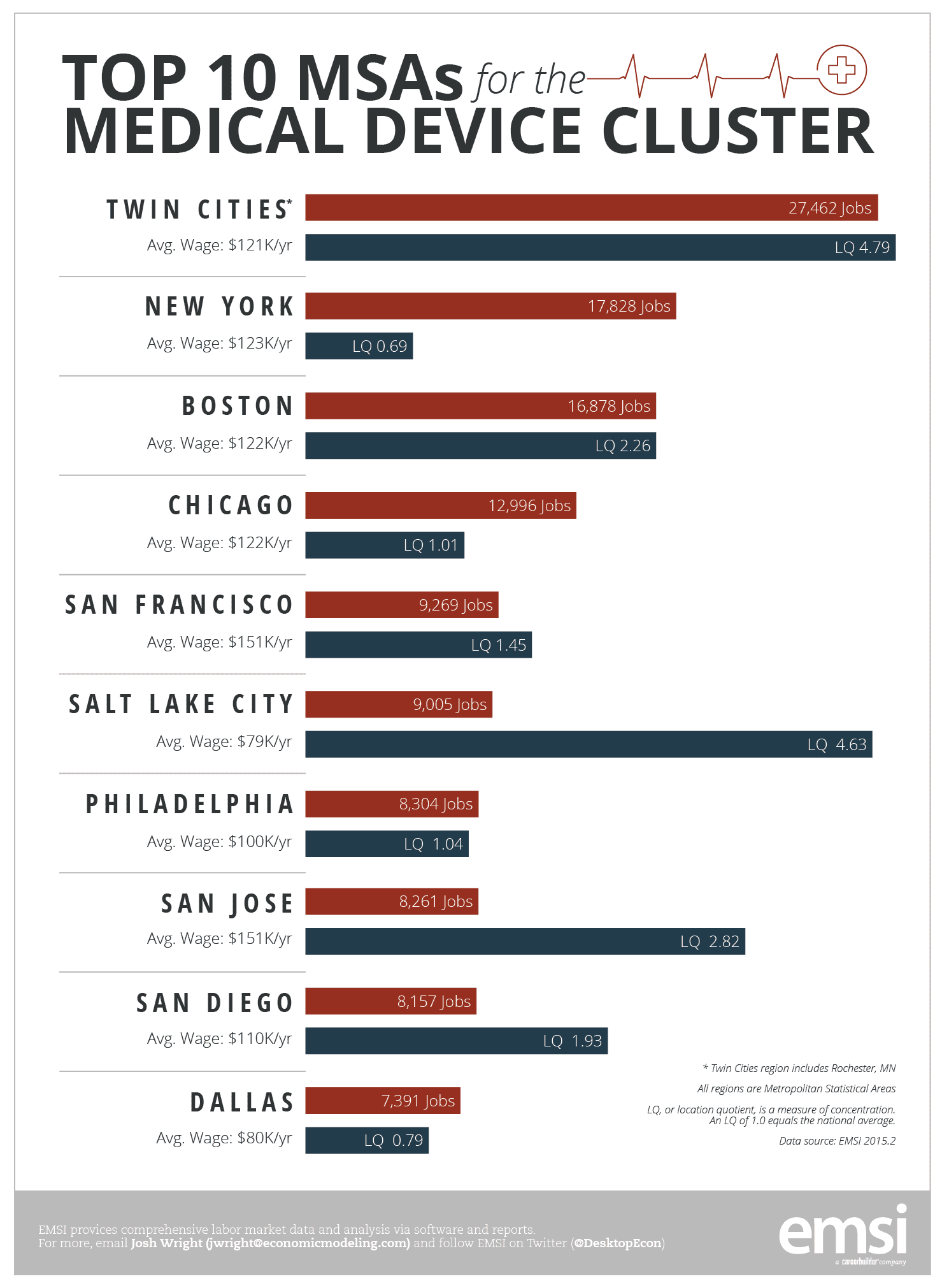 Watch our video on how to determine industry clusters in your area. For more information on EMSI data and services, contact us. Follow EMSI on Twitter (@DesktopEcon) or check us out on LinkedIn and Facebook.